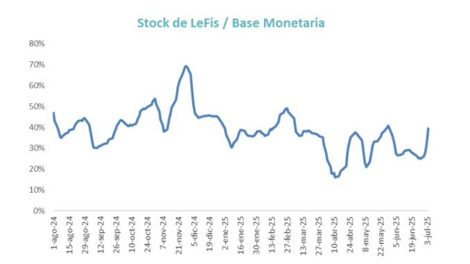 La base monetaria puede aumentar por la emisión de pesos para asistir al financiamiento del Tesoro, la compra de dólares por parte del Banco Central o el pago de intereses de los pasivos remunerados.